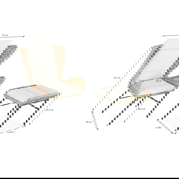 Farbe weiß Kissen & Auflagen 5 cm dicke Sitzauflage, Schaumstoff, hoher Sitzkomfort Gewicht ca. 14 kg Material Aluminium, Polyrattan Montage Montage erforderlich Lieferumfang 1x Hocker, 1x Sessel, Sitzauflagen inklusive Sitzplätze bis zu 1 Obermaterial Hochwertiges Polyrattan, angeraut, wasserfest, 100% handgeflochten, einfarbig, durchgefärbt, Farbe: weiß Gestell Aluminium, pulverbeschichtet, Stärke bis zu 1,2 mm, robust, rostfrei, wetterbeständig Bezug 100% Olefin, robuste Verarbeitung, hohe Festigkeit, durchgefärbt, vorimprägniert Eigenschaften Traglast bis zu 120 kg pro Sitzplatz, wetterbeständig, pflegeleicht, Rückenlehne ergon. geformt Artikelnummer 23614 Sicherheitshinweise