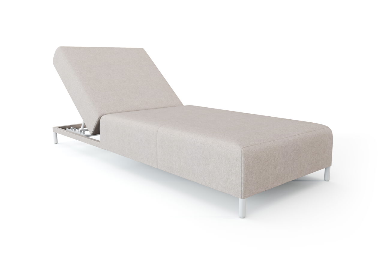 Das matte, weiße Aluminiumgestell verleiht dieser Liege eine zeitlose Eleganz, während der Bezug in edlem Quarzbeige eine harmonische Ergänzung bildet. Dank seiner wasserfesten Eigenschaften eignet sich dieses Meisterwerk perfekt für sonnige Tage und bietet stets ein angenehmes Liegeerlebnis, da das Material schnell trocknet.
