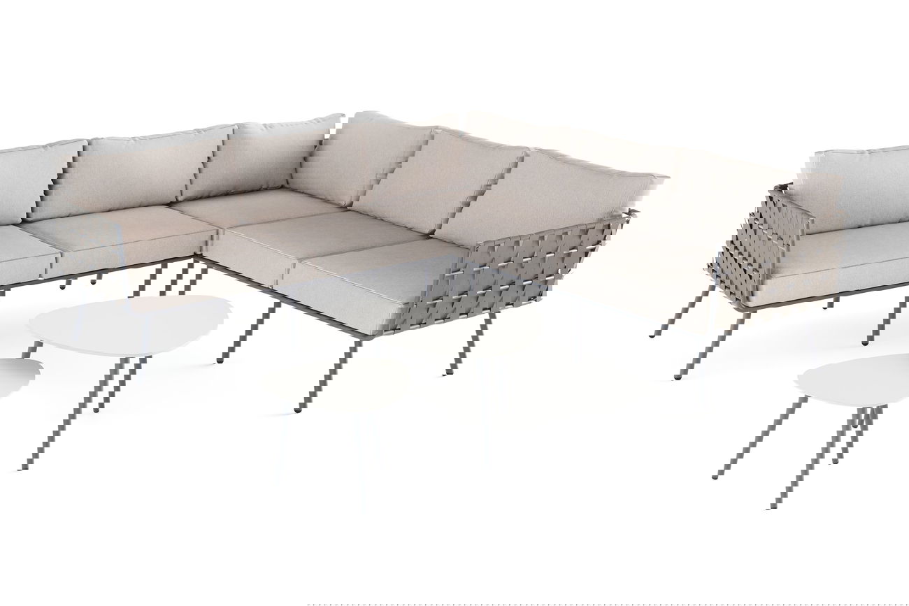 Farbe graubraun Kissen & Auflagen hoher Sitzkomfort, 12 cm dicke Sitzauflagen, Schaumstoff, dicke Rückenpolster, Kunstfaser Gewicht Sitzgruppe ca. 40 kg Material Aluminium, Rope Montage Montage erforderlich Tischplatte Aluminium, matt, seidengrau, Stärke 4 mm, pulverbeschichtet Lieferumfang 2x Loungetisch, 1x Ecksofa, 1x Abschlußsofa links, 1x Abschlußsofa rechts Sitzplätze bis zu 5 Obermaterial 100% handgeflochten, einfarbig, durchgefärbt, schnell trocknend, 100% Olefin Seil, Farbe: graubraun, 50 mm breit Gestell Aluminium, pulverbeschichtet, robust, rostfrei, wetterbeständig, Stärke bis zu 1,5 mm Bezug beige, 100% Olefin, abnehmbar, waschbar bei 30°C, robuste Verarbeitung, hohe Festigkeit, verdeckte Reißverschlüsse, mehrfarbig, vorimprägniert, durchgefärbt Eigenschaften Traglast bis zu 120 kg pro Sitzplatz, wetterbeständig, pflegeleicht Artikelnummer 23515 Sicherheitshinweise