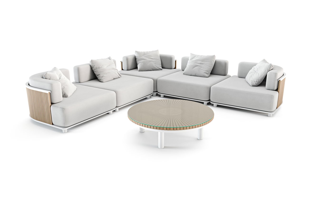 Designer Aluminium Sitzgruppe Meloria Lounge mit Teakholzleisten. Gratis Versand.