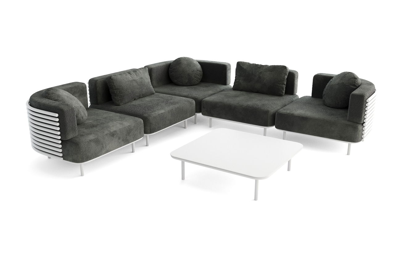 Mit dem passenden Loungetisch aus Aluminium wird das Ensemble perfekt abgerundet. Dank der frei stellbaren Elemente lässt sich die Lounge flexibel an Ihre Wünsche und Platzverhältnisse anpassen – und das ganz ohne Montage.